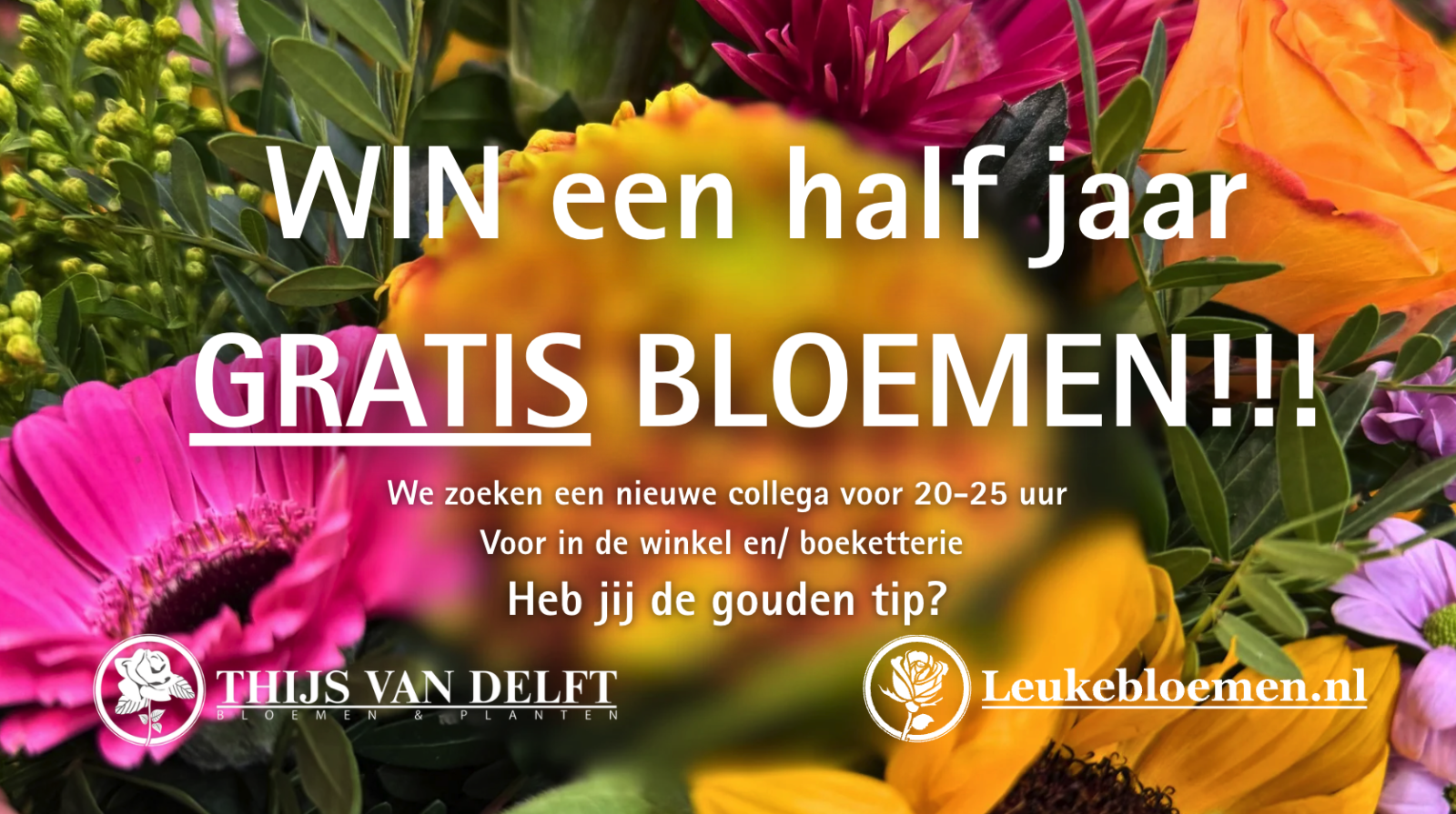 Wij zijn op zoek naar een nieuwe collega! Voor in de winkel en/ of boeketterie. Heb jij de gouden tip? Win een half jaar lang GRATIS bloemen!